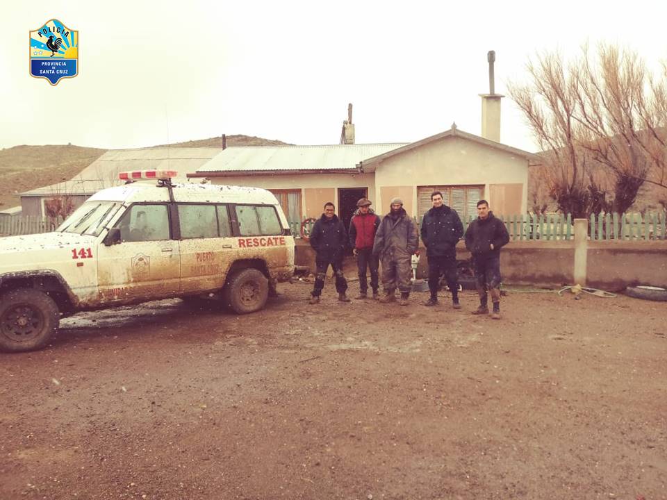 A través de un trabajo en equipo se logró establecer por intermedio de la Subsecretaría de Seguridad Vial, las coordenadas aproximadas donde se encontrarían las personas, dado que las recepcionó las mismas por vía telefónica. Es así que siendo las 07.30 una comitiva de rescate partió desde la Unidad Operativa Tres Cerros, integrada por el móvil de rescate 4x4 de la División Bomberos Cuartel 7 de Pto Santa Cruz con efectivos de la División Bomberos 3ra de Pto. San Julián, acompañado por móvil de División Comisaria Segunda PSJ y efectivos de Unidad operativa tres cerros.